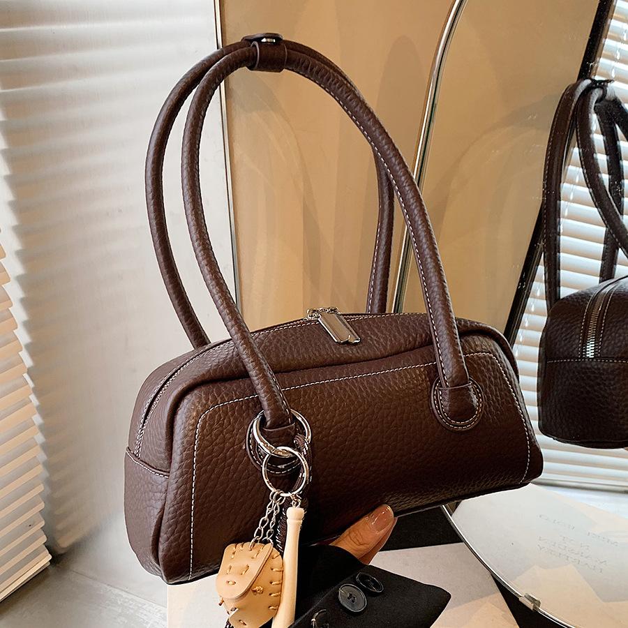 - **Детали структурированной сумки-трансформера**: Имеет стильный структурированный силуэт сумки-сатчела из ПУ материала, спортивный брелок (доступно с подвеской или без), и вариант ношения на одном плече, источающий ретро и игривое очарование. Множество цветовых и шармовых вариаций (Черный, Красный, Коричневый, Кофе, с/без брелока на спортивную тематику) удовлетворять разнообразным стилевым предпочтениям.