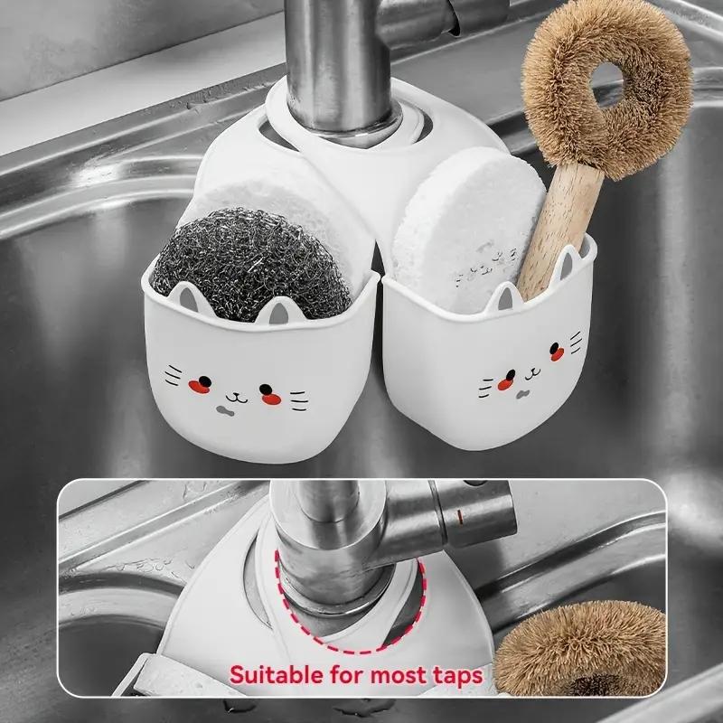 Милые силиконовые корзины для кранов в виде кота, органайзер для кухонной мойки, очаровательная полка для хранения губок и скребков, подходит для большинства кранов