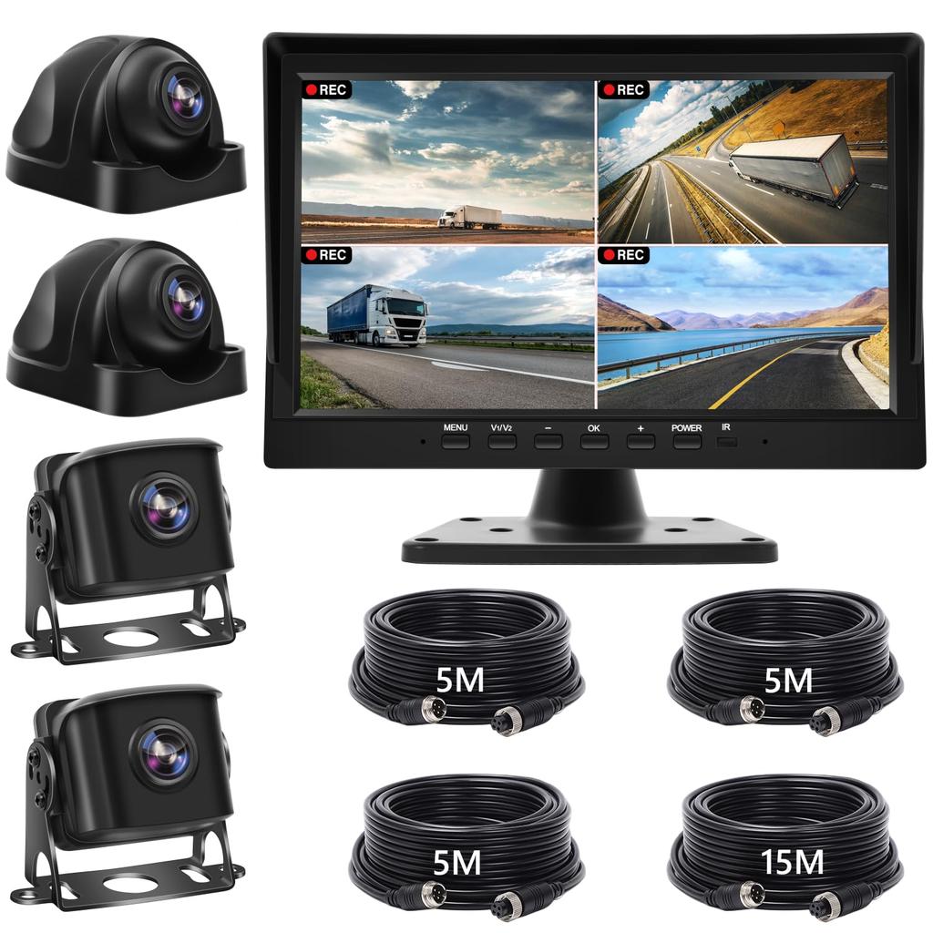 Это комплект монитора заднего вида с 10,1-дюймовой IPS ЖК-панелью и четырьмя автомобильными AHD-камерами. Он также имеет функцию записи.