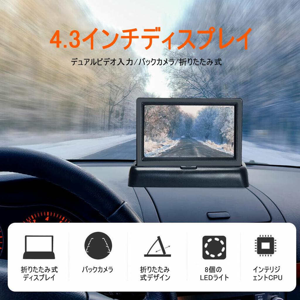 Stynxro 4,3-дюймовый комплект монитора камеры заднего вида со складным дисплеем, ЖК-монитор заднего вида высокого разрешения, 8 светодиодных ламп, камера заднего вида, совместим с 12-вольтовыми транспортными средствами, простая установка