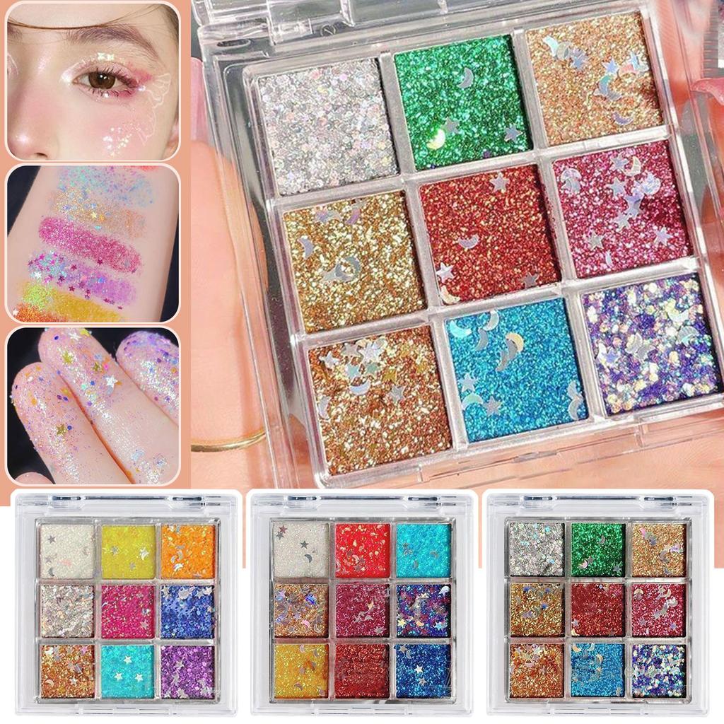 9-цветный гель, Цветные блестки, 9-цветные тени для век без клея, Сценический макияж для выступлений, Крупные блестки, Суперсияющие. — купить товар онлайн с бесплатной доставкой по всему миру!
