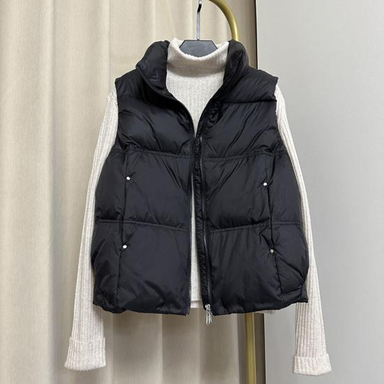 Женский пуховый жилет повседневный без рукавов со стойкой воротником пуховик зимний теплый на молнии верхняя одежда с карманами