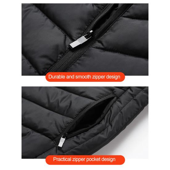 Удобство и простота обслуживания: Для дополнительного удобства этот жилет не включает в себя блок питания, но может быть легко запитан от него.. Его легко чистить, не требуя разборки, как при стирке обычной куртки.. Интерфейс USB позволяет проводить прямую очистку, обеспечивая безопасность путем предварительного отключения питания.