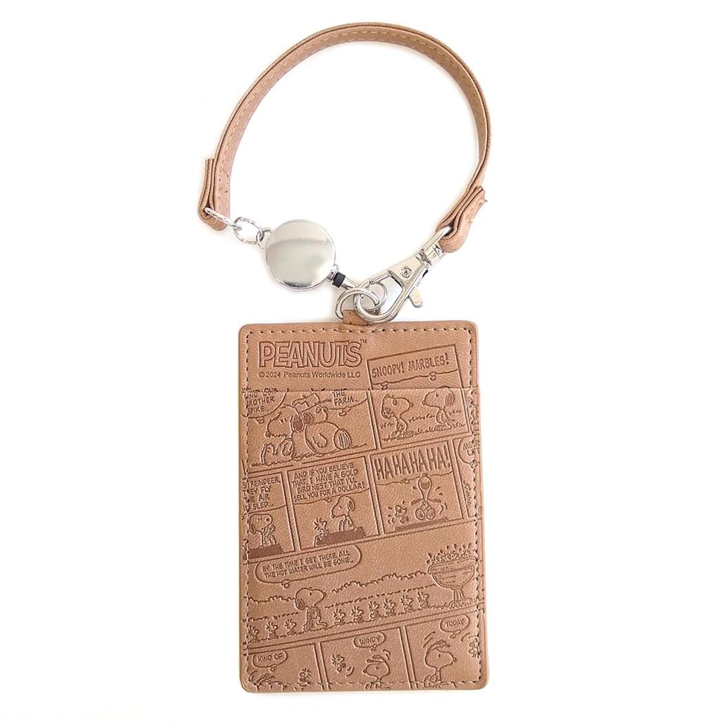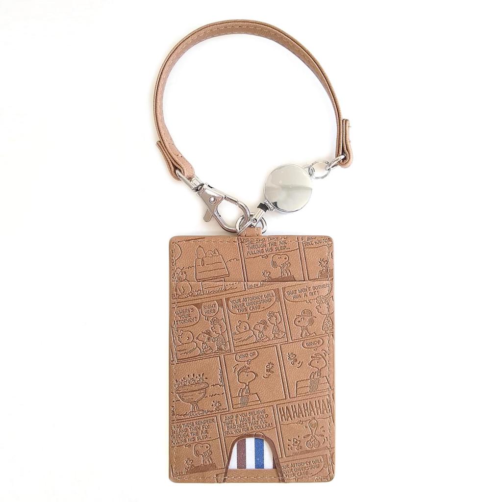 Чехол для пропуска Snoopy с катушкой Стильный Искусственный Милый Тисненый Чехол для всех IC-карт Ремешок, Кожа, Дизайн, Комикс, Коричневый,