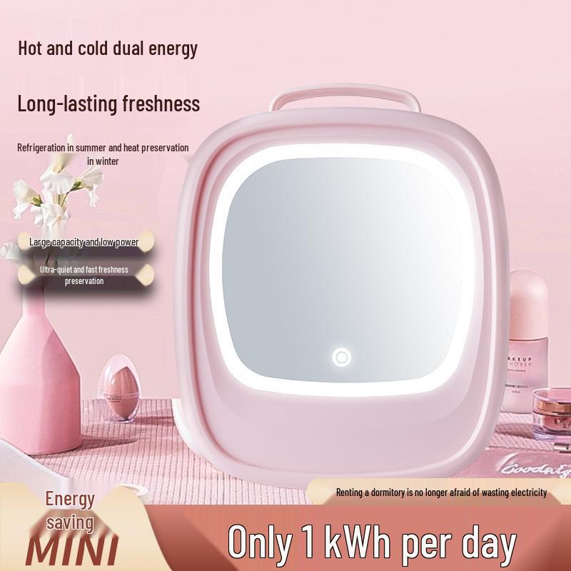 Мини Портативный Двухрежимный Автомобильный и Домашний Холодильник с Зеркалом для Макияжа