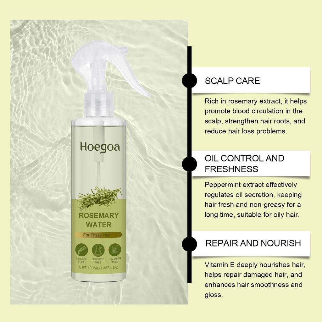 Спрей для ухода за волосами с розмари Стимулирует здоровье кожи головы Контроль жирности Восстановление поврежденных волос Освежающий Усиливает блеск волос Спрей для волос