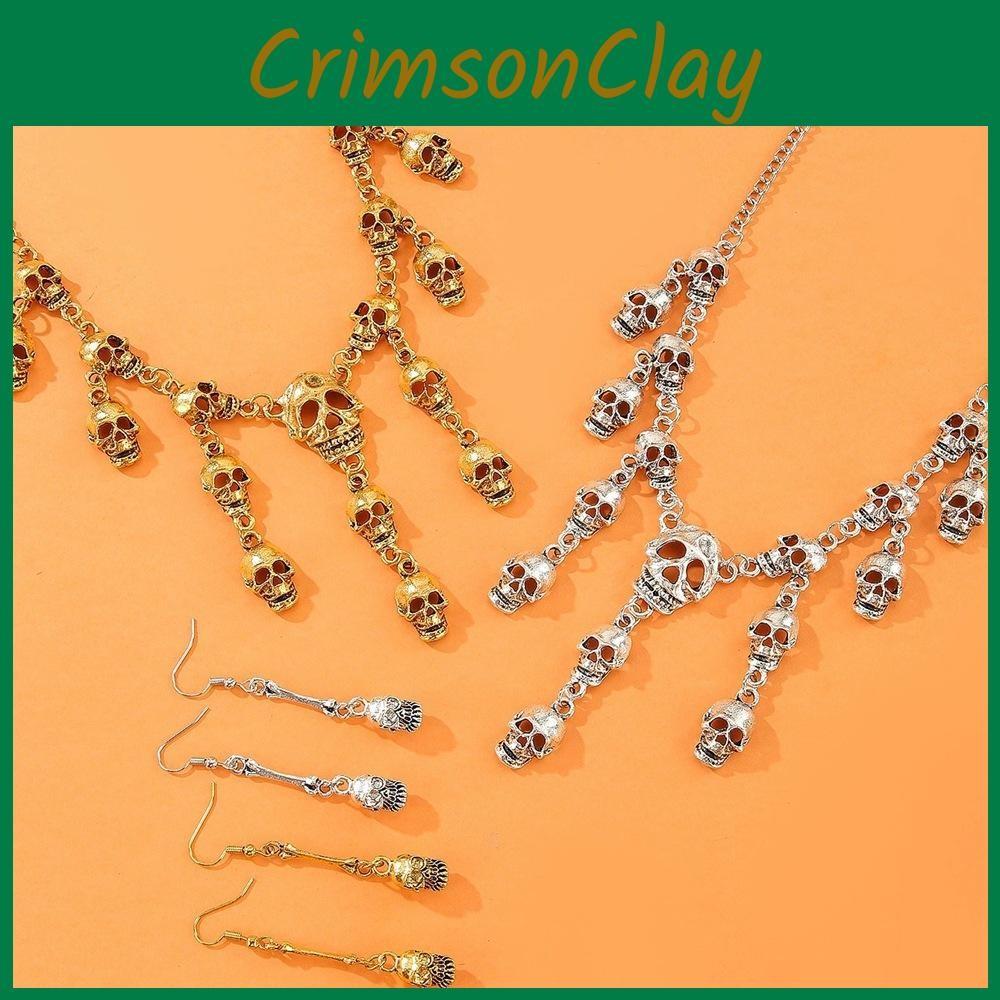 Ожерелье Скелет Готическое и Набор Серег из Сплава для Празднований Хэллоуина и Альтернативного Стиля