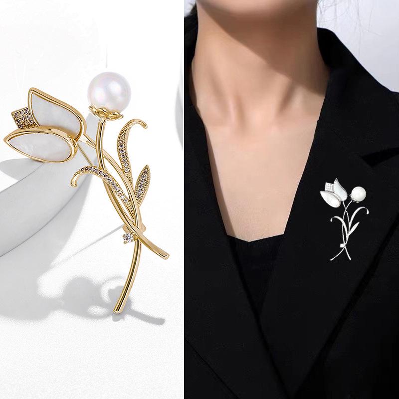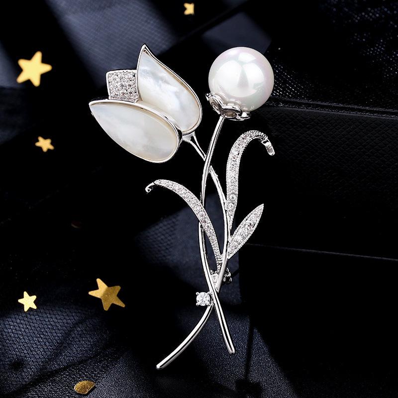 Брошь-корсет Тюльпан Жемчуг - Элегантная женская модная булавка для универсальных аксессуаров для костюма или пальто.