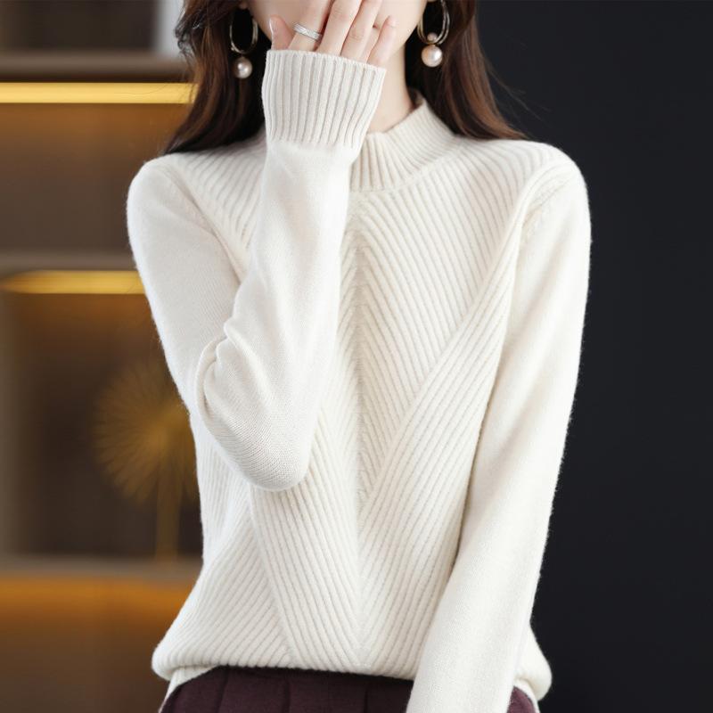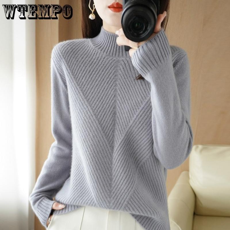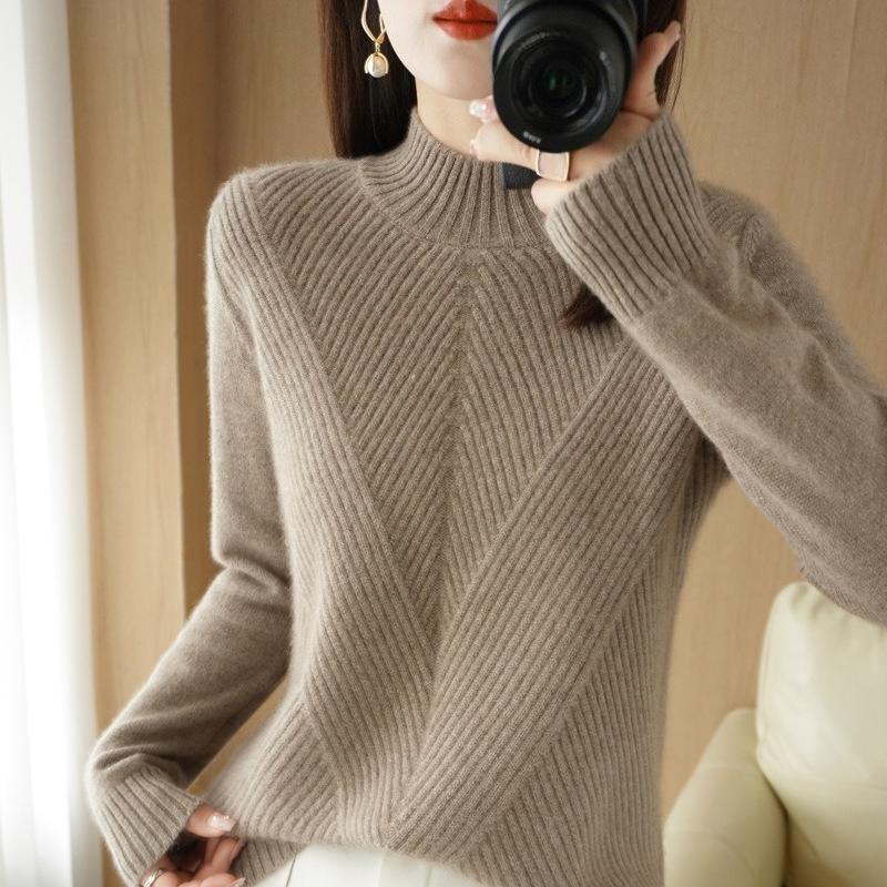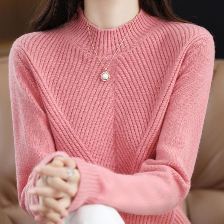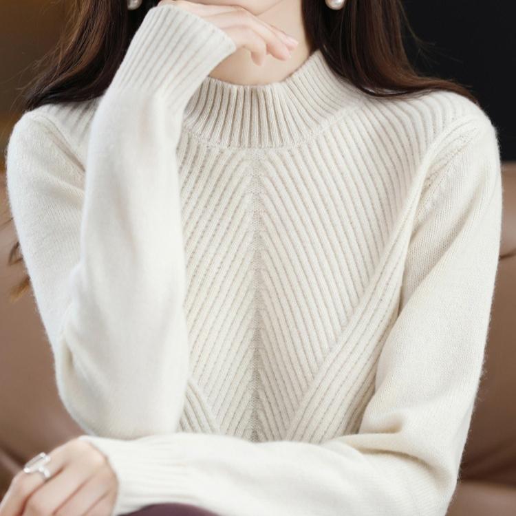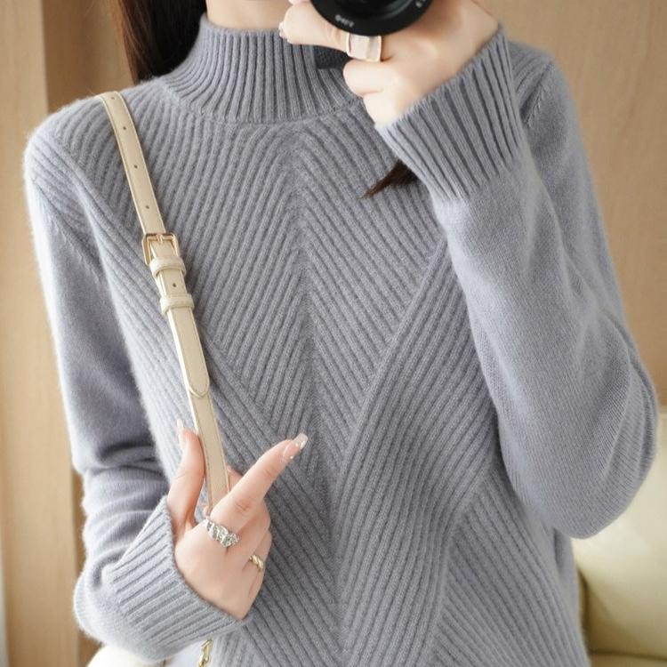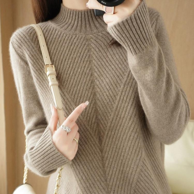 Свитер вязаный утолщенный с полувысоким воротником однотонный повседневный для женщин с длинными рукавами свободный пуловер осень