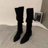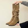 Ретро Плиссированные Замшевые Длинные Сапоги для Женщин Зимняя Мода Массивный Каблук Шпилька Сексуальные Сапоги. Универсальные женские ботинки большого размера
