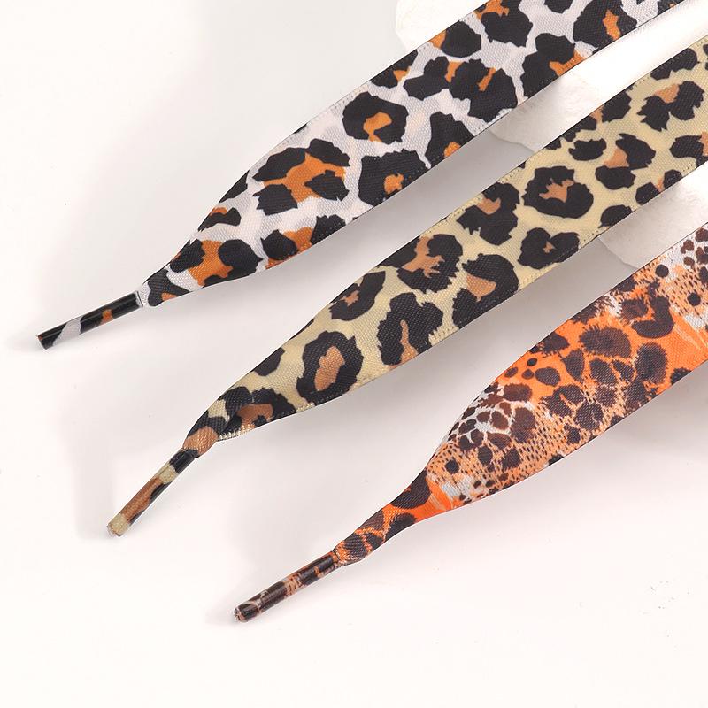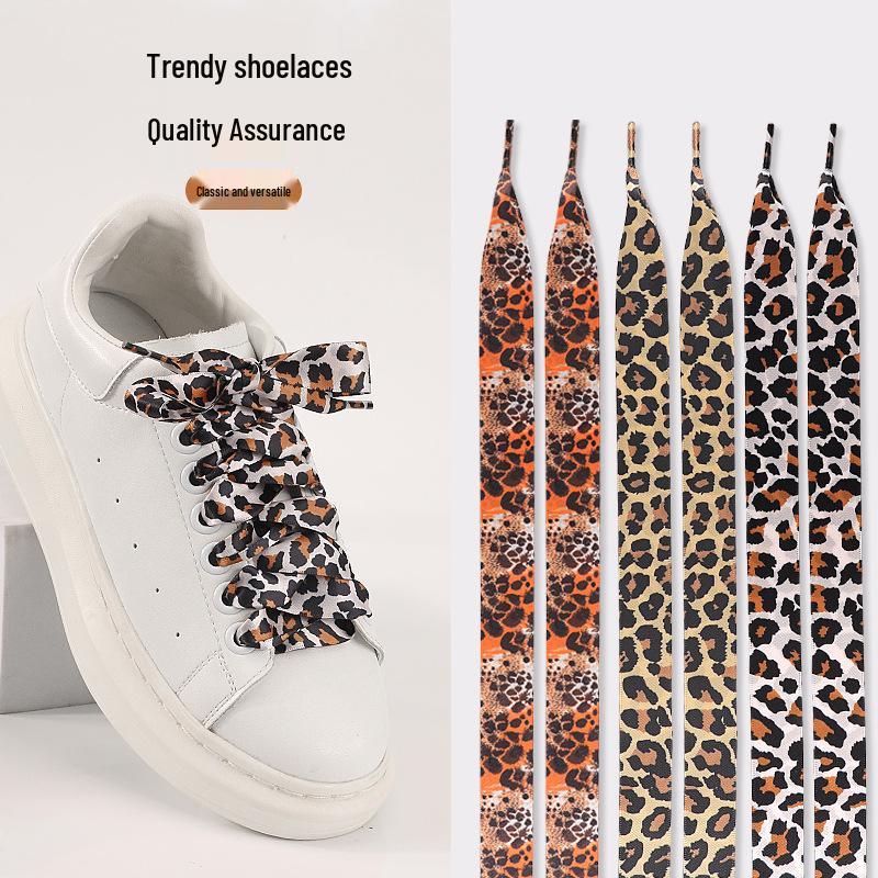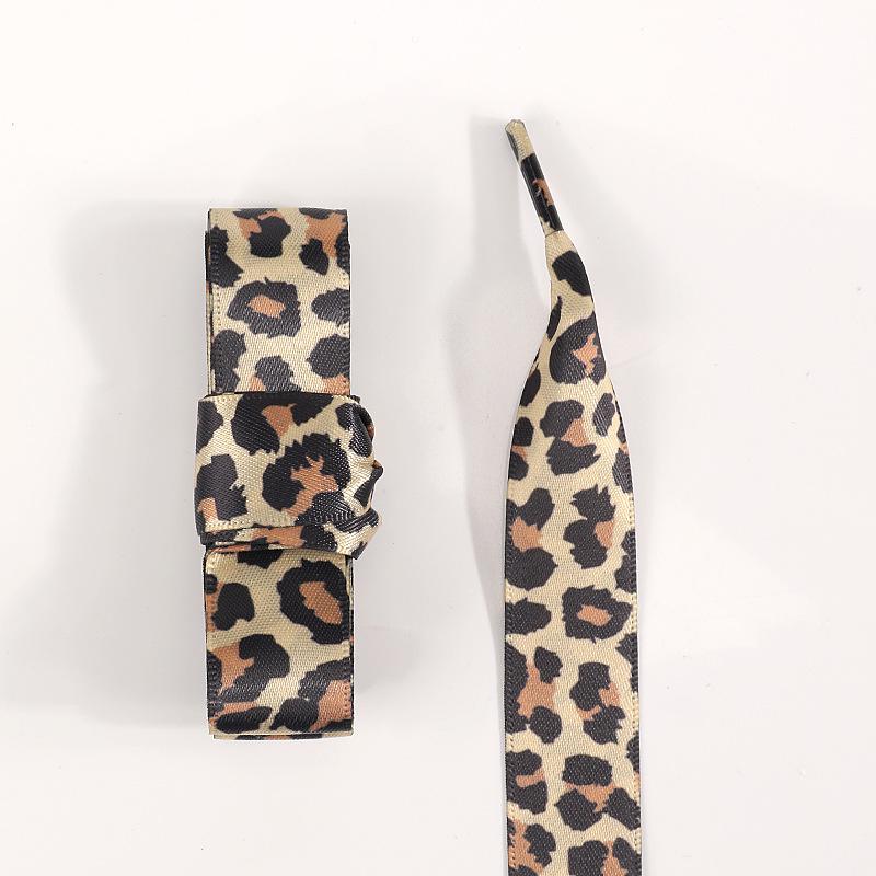 Персонализированные атласные шнурки с леопардовым принтом 2 см - Широкие плоские шнурки для белых кроссовок