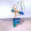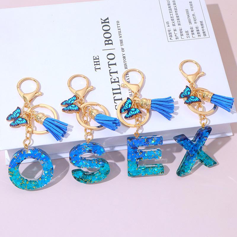 1 шт. Брелок с надписью для подвески на рюкзак, держатель для ключей, брелок с кисточкой, бабочка, милая градиентная смола, синий с пайетками