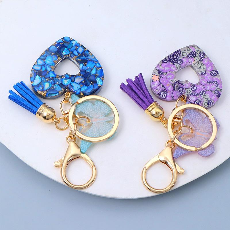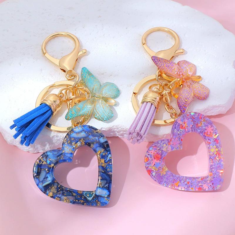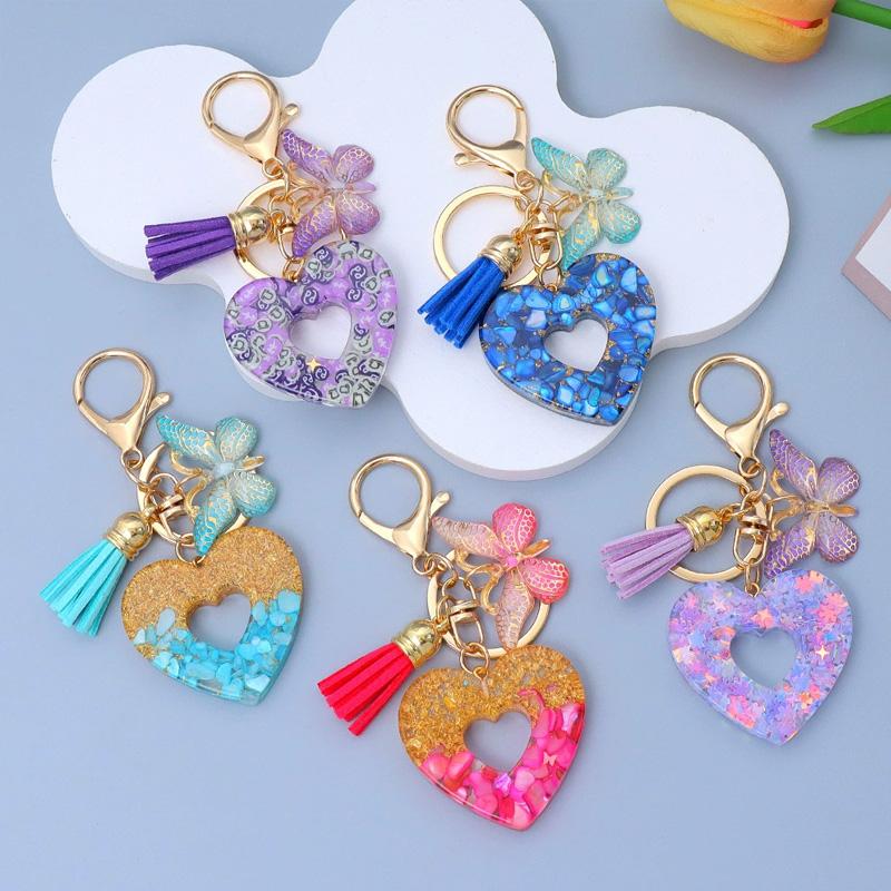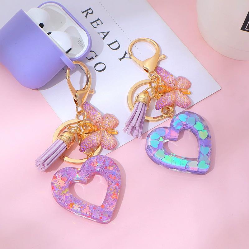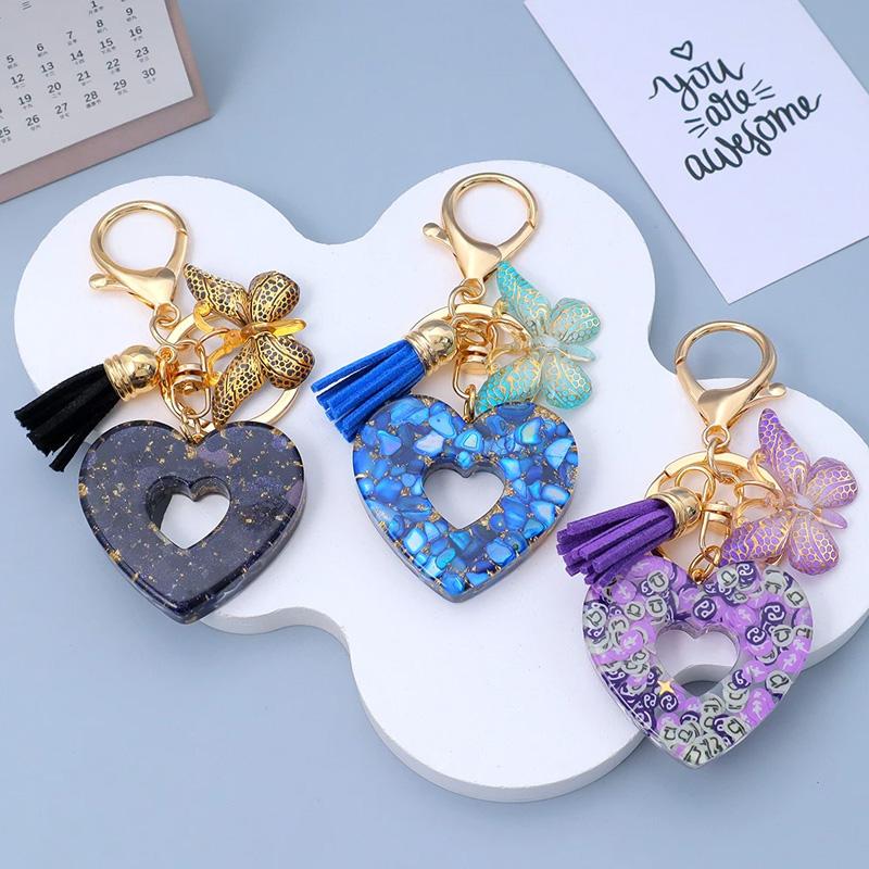 1 шт. Брелок Креативная кисточка-бабочка для кошелька, сумочки, брелок с сердечком любви, аксессуары для ключей автомобиля, брелок из смолы, кристалл