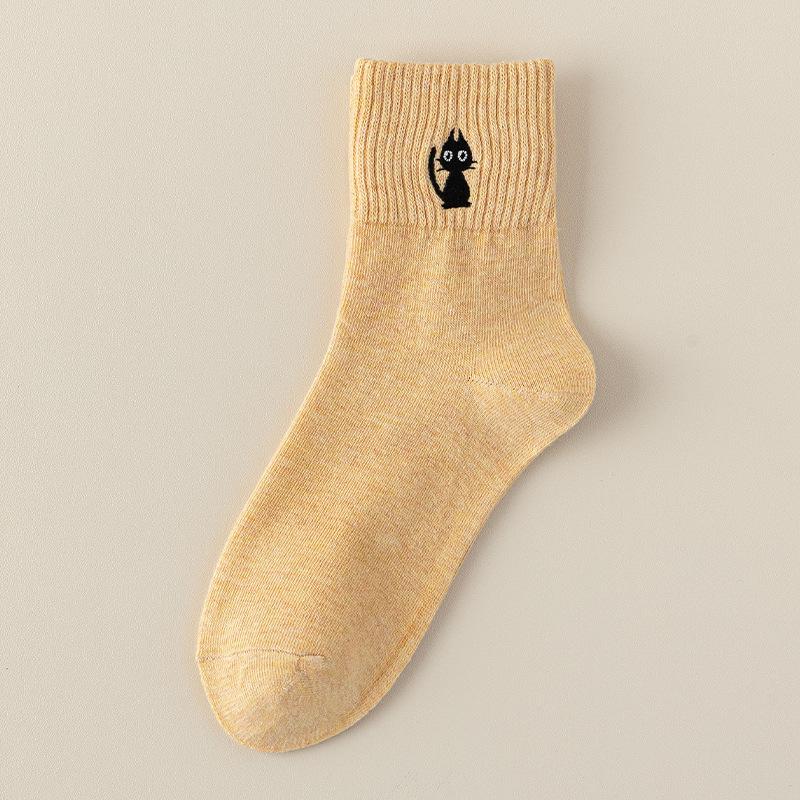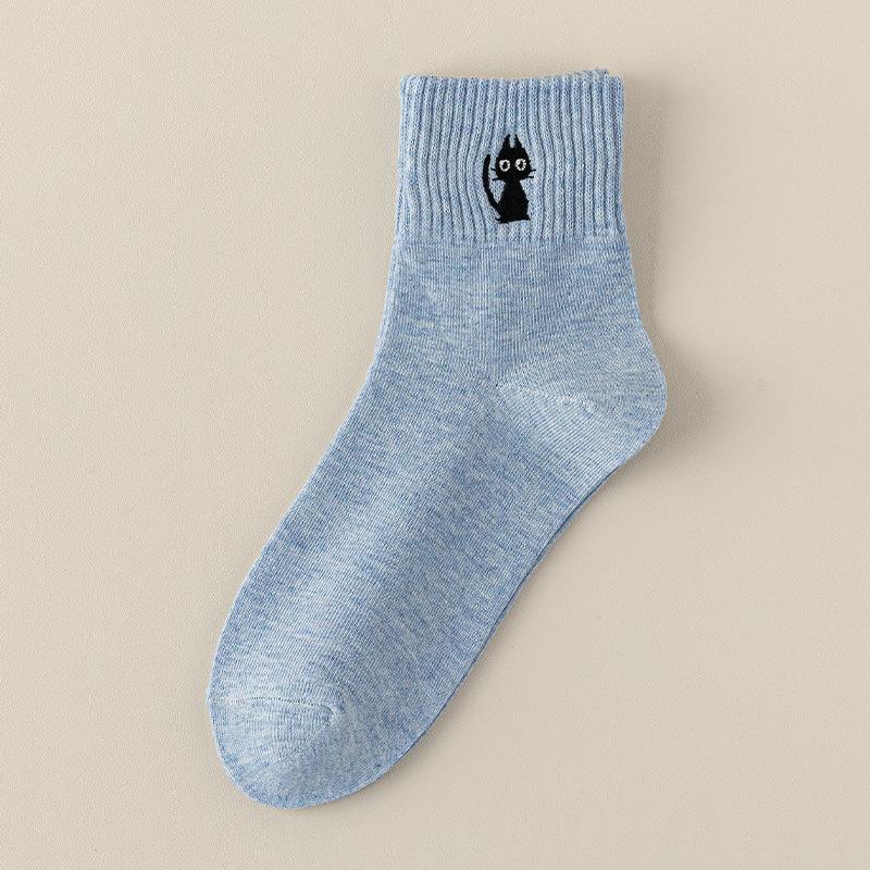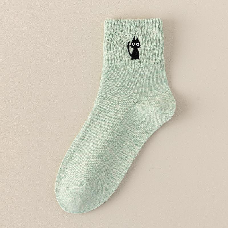 Женские весенне-летние хлопковые носки до середины икры пастельных цветов с вышивкой кошек