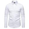 Осенняя мужская однотонная рубашка с плиссированным дизайном, с длинными рукавами, европейского размера, мужская рубашка свободного кроя