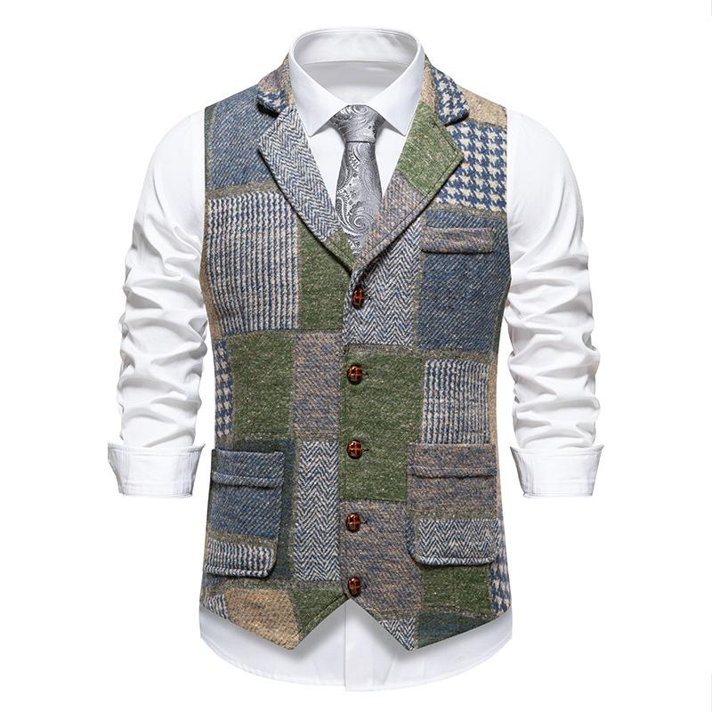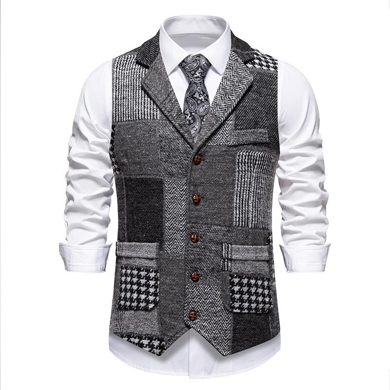 Осенний мужской ретро жилет с лацканами и вставками, европейский размер, мужской повседневный жилет