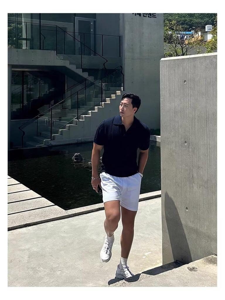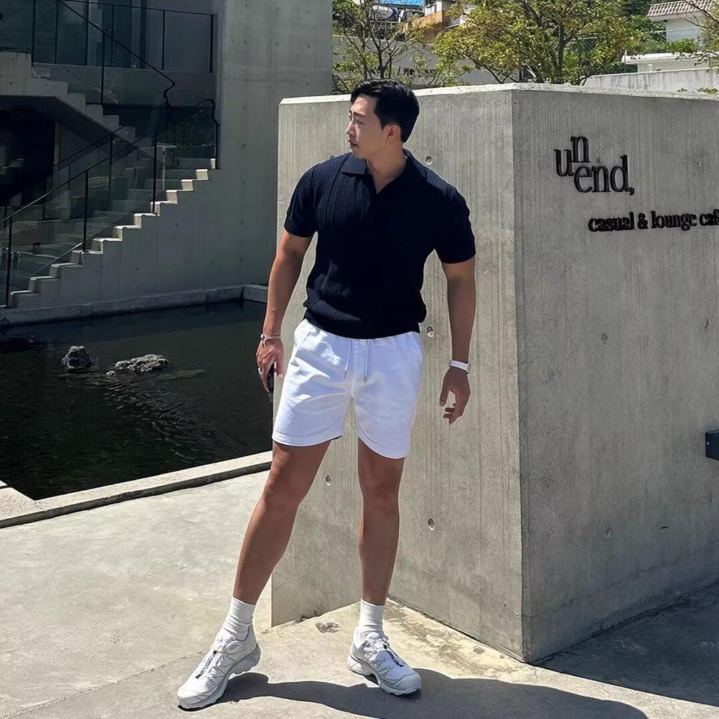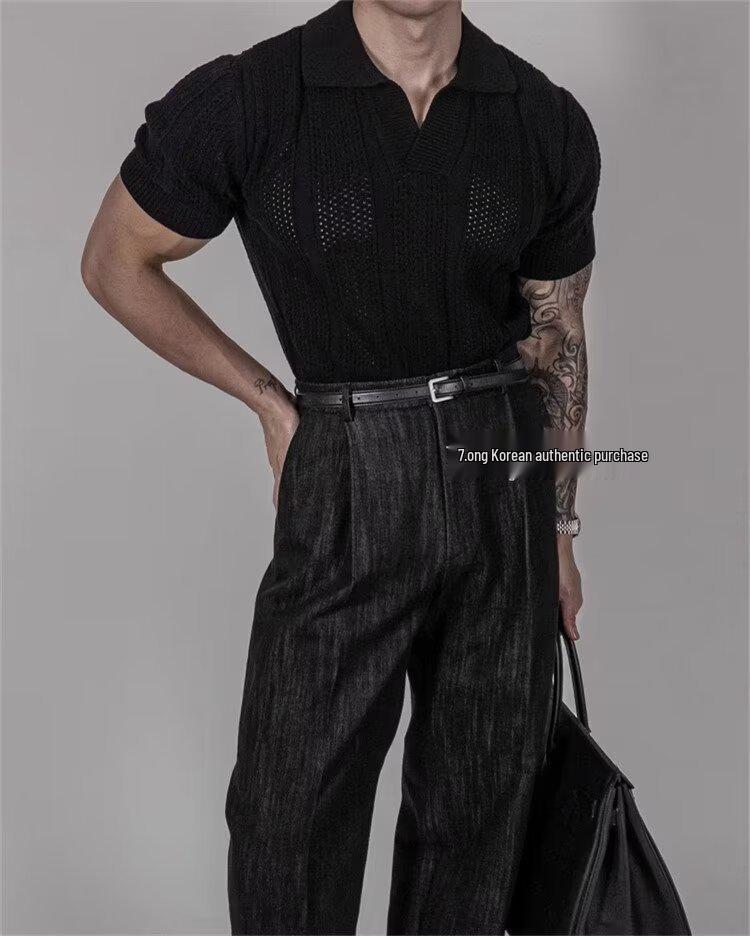 Мужская летняя рубашка поло в стиле хай-стрит - Вязаная с коротким рукавом, с лацканом, охлаждающий пуловер