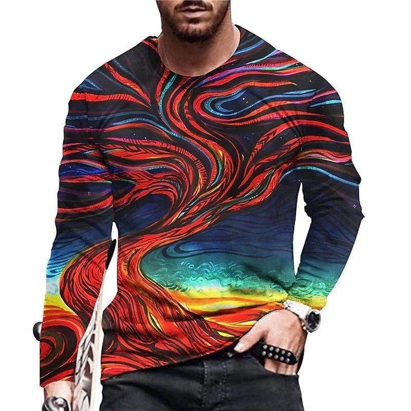 Весенне-осенние мужские футболки с круглым вырезом, ярким абстрактным 3D-принтом, модные, повседневные, с длинным рукавом