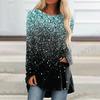 Весенне-осенние женские футболки с круглым вырезом, градиентным блестящим узором и 3D-принтом, модные повседневные с длинным рукавом