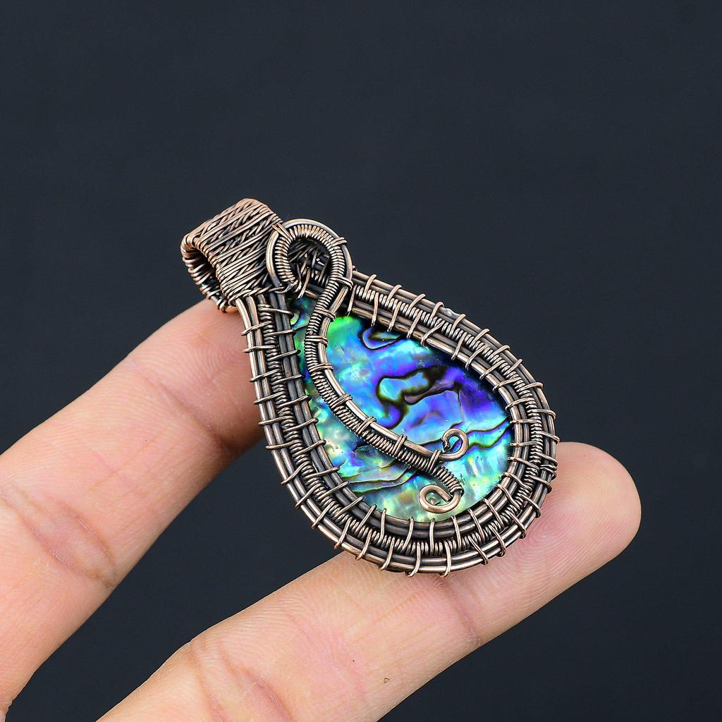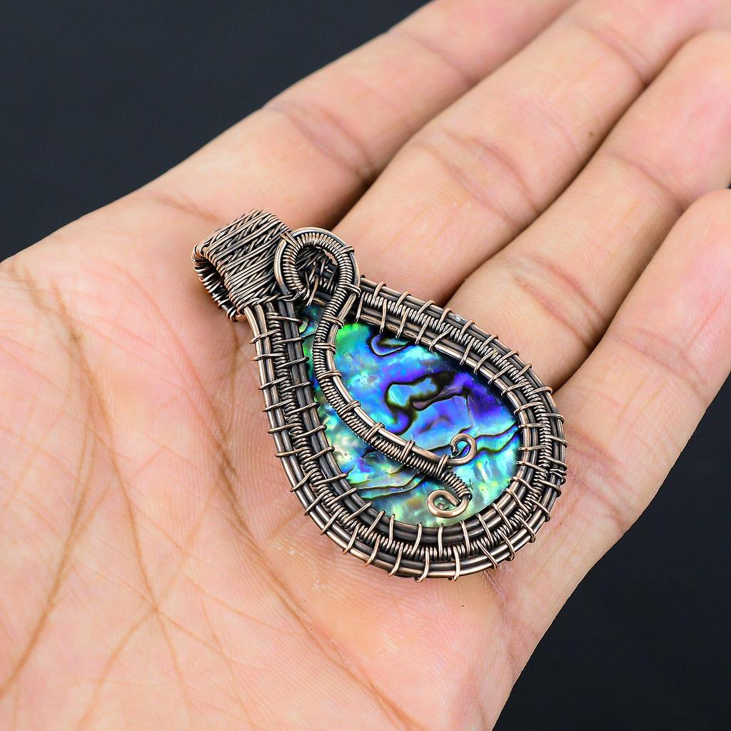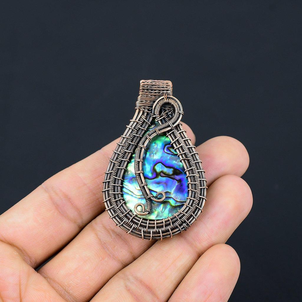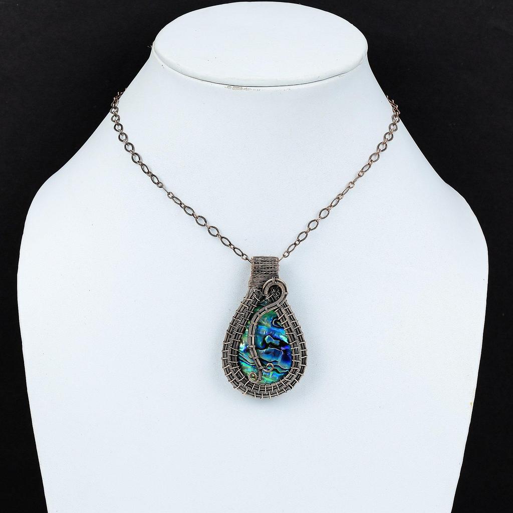 Кулон из раковины абалона, обернутый медной проволокой 999 пробы, Ювелирные изделия с подвеской из драгоценного камня ручной работы, Подарки для жены, Совершенно новый кулон