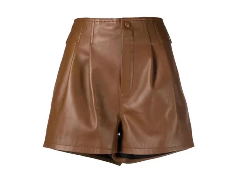 Модные Повседневные Коричневые Женские Шорты Натуральная Кожа Ягненка Стильные Ручной Работы