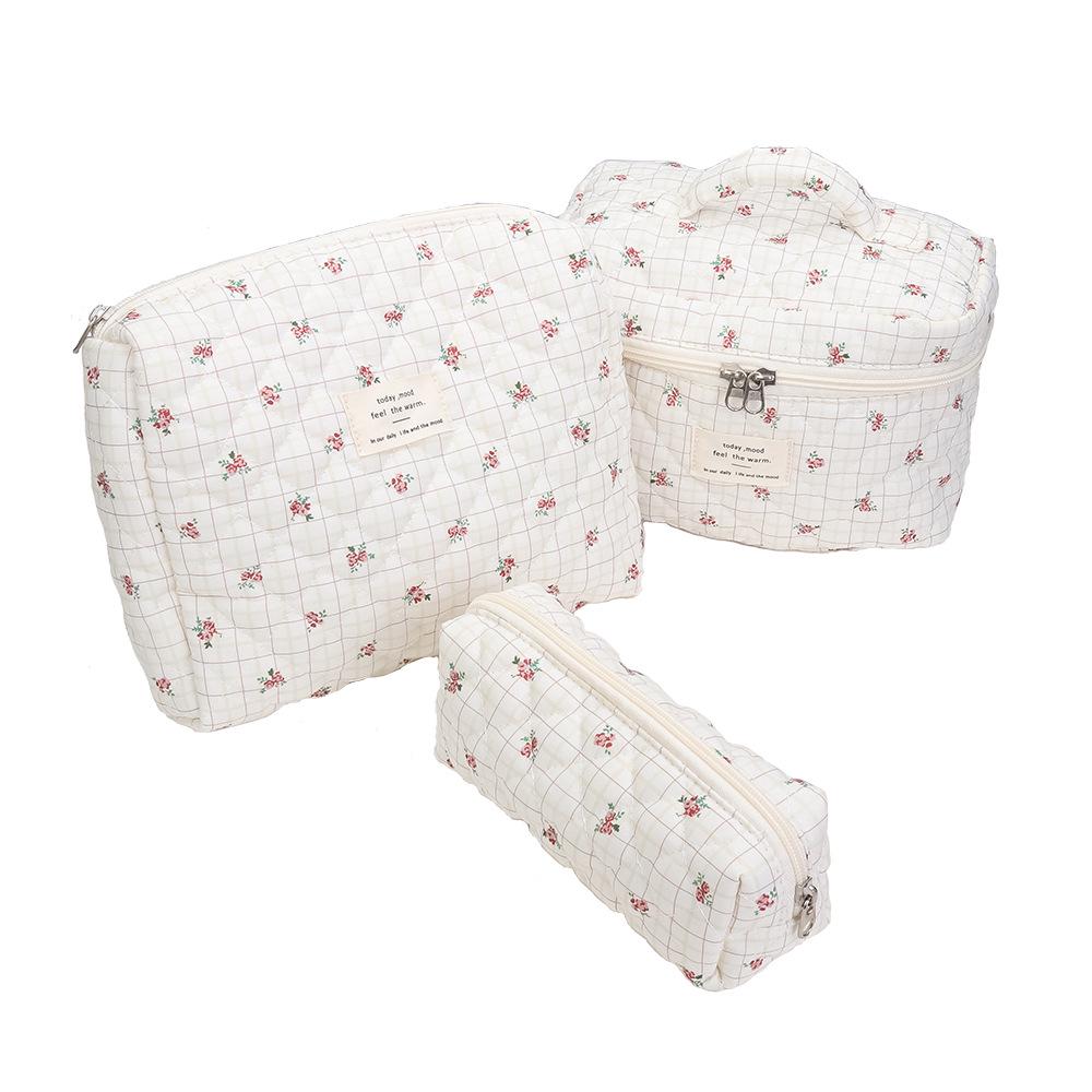 Набор дорожных косметичек из стеганого хлопка с цветочным принтом – Портативный, Вместительный, 3 предмета