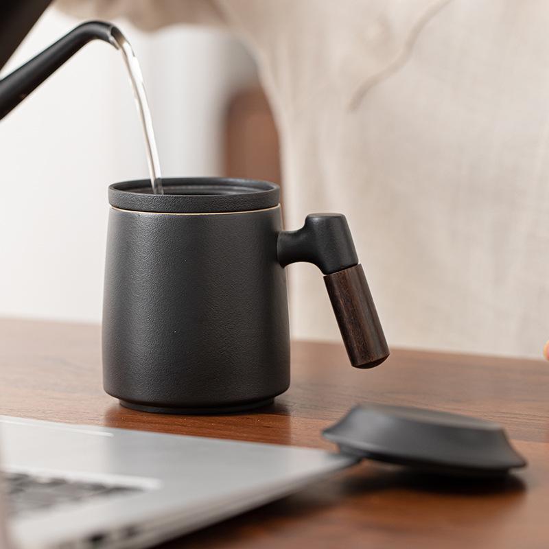 Керамическая кружка деревянная ручка с крышкой фильтр чашка для чая большая вместимость офисная кружка чашка для чая разделение чая подарок