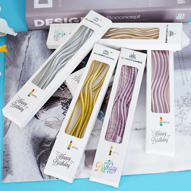 New 6pcs Birthday Candles Spiral Cake Candles Long Thin Cake Candles for Wedding Party and Cake Decoration Party Decorative