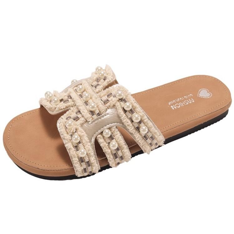 Слипоны Xiaoxiangfeng на плоской подошве женские лето 2025 новинка уличная мода жемчуг мягкая подошва французские с юбкой крутые тапочки