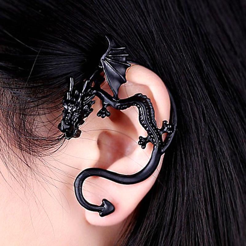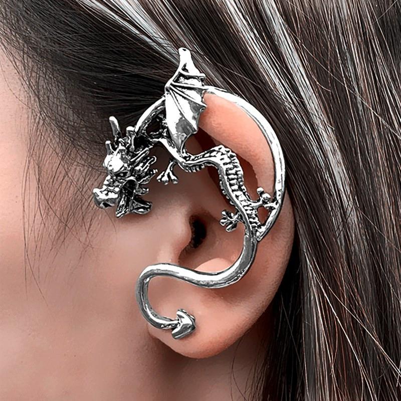серьга, готическая бижутерия, панк-аксессуары, серьги-каффы с драконом, винтажные серьги, серьги унисекс, бижутерия с животным мотивом, летняя модная бижутерия