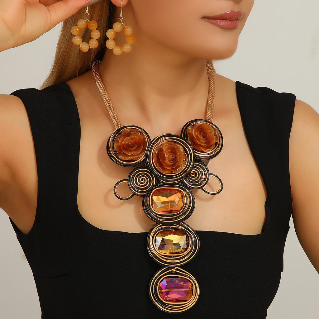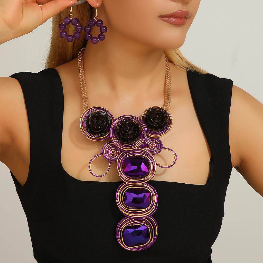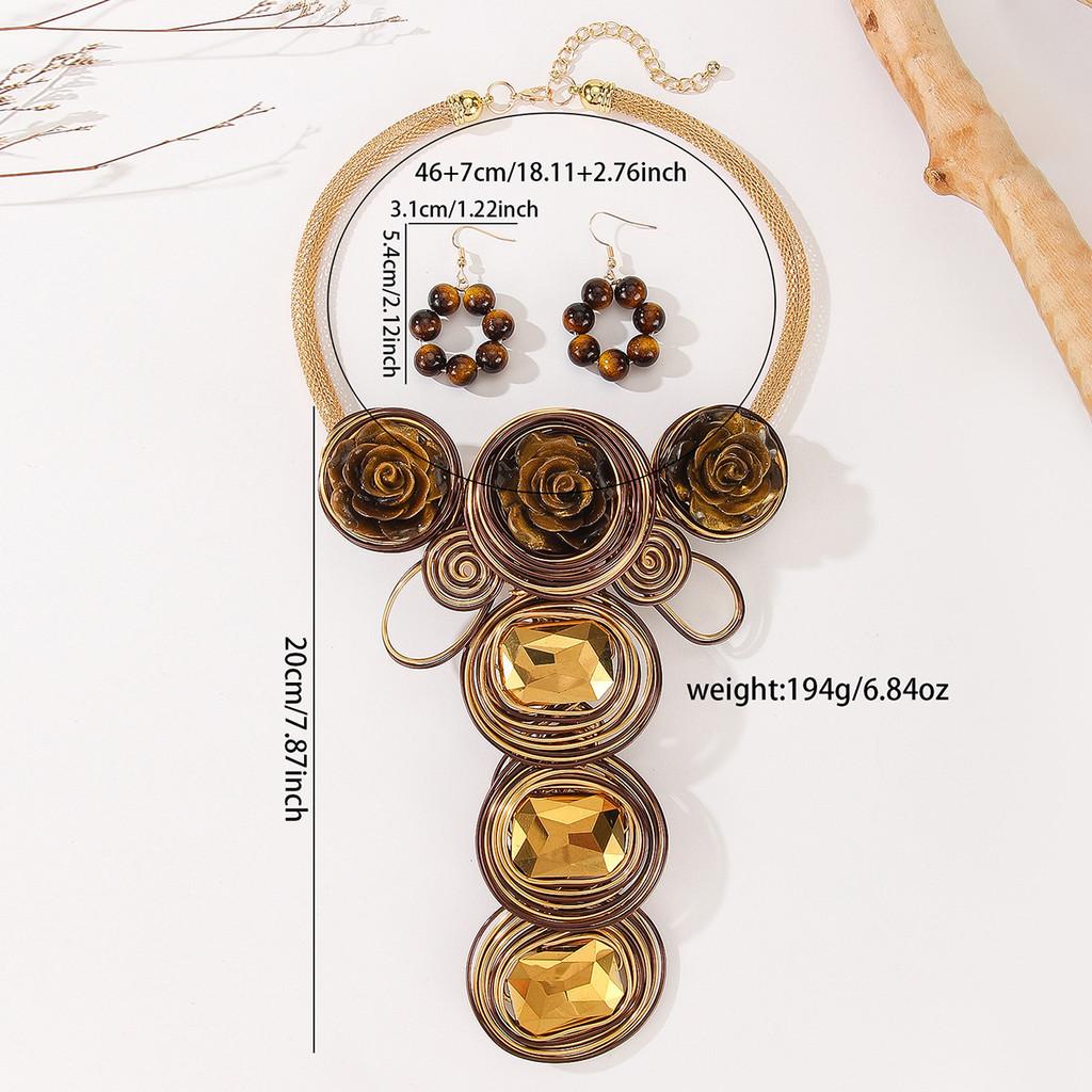 Этот ювелирный набор отличается крупным дизайном из смешанных материалов с гальваническим покрытием, сочетающим драгоценные камни, похожие на кристаллы, и цветочные акценты из смолы.. Ожерелье длиной примерно 24 дюйма выполнено в стандартном стиле цепочки, а серьги содержат соответствующие мотивы.. Созданный для универсальной носки, он подходит как для повседневных, так и для официальных случаев.. Идеально подходящий для модных тенденций весны 2025 года, он добавляет смелый, художественный штрих любому ансамблю.. Для поддержания блеска протирайте мягкой влажной тканью.