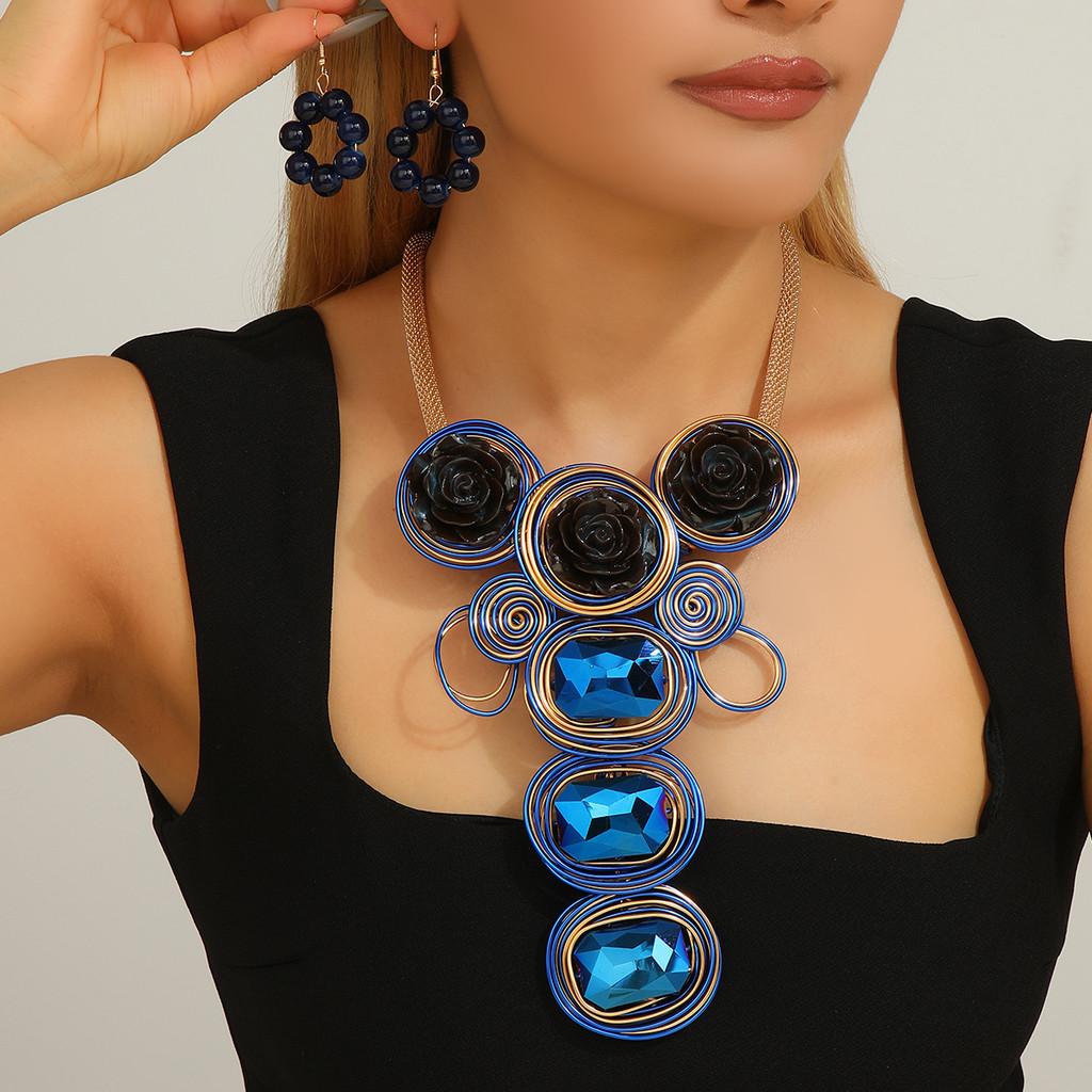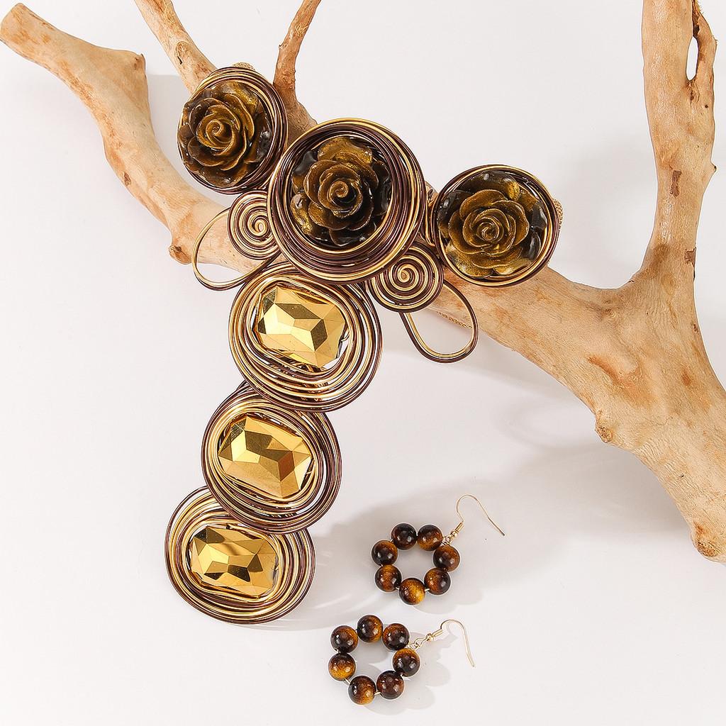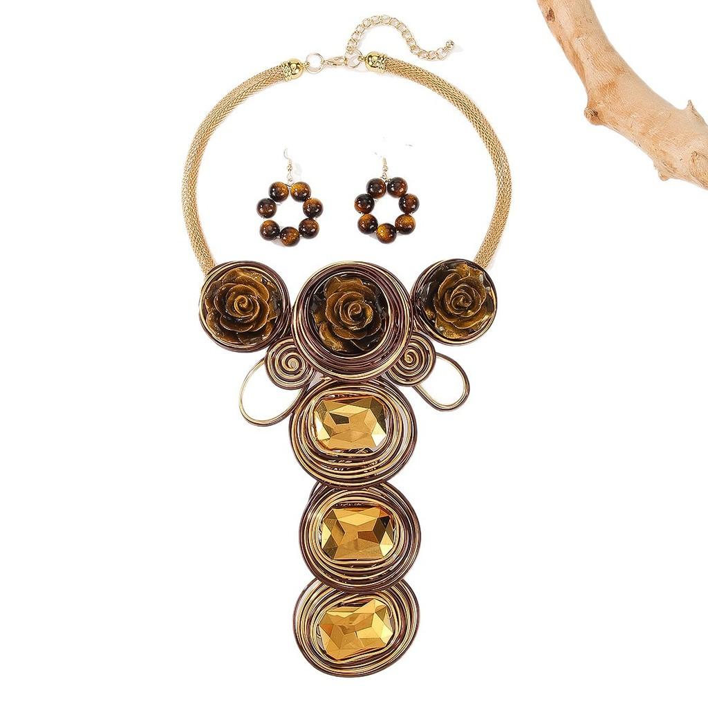Этот ювелирный набор отличается крупным дизайном из смешанных материалов с гальваническим покрытием, сочетающим драгоценные камни, похожие на кристаллы, и цветочные акценты из смолы.. Ожерелье длиной примерно 24 дюйма выполнено в стандартном стиле цепочки, а серьги содержат соответствующие мотивы.. Созданный для универсальной носки, он подходит как для повседневных, так и для официальных случаев.. Идеально подходящий для модных тенденций весны 2025 года, он добавляет смелый, художественный штрих любому ансамблю.. Для поддержания блеска протирайте мягкой влажной тканью.