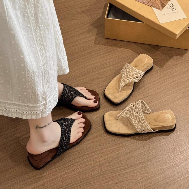 Французские плетеные шлепанцы на толстой подошве женские летние 2025 новые модели с юбками интернет-знаменитости шлепанцы с перемычкой крутые шлепанцы