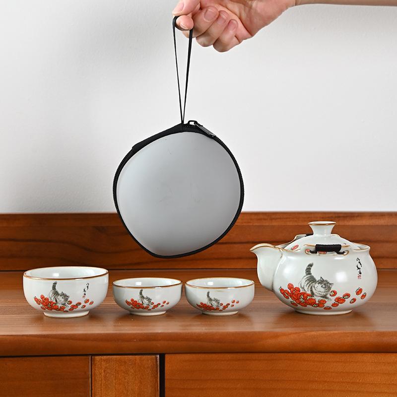 Ручная печь, скрученная ветка лотоса, набор для путешествий из трех чашек, полный набор экспресс-чашки, уличная портативная сумка, заварочный чайник