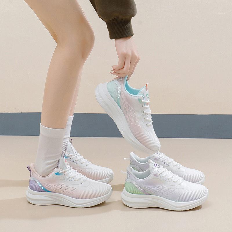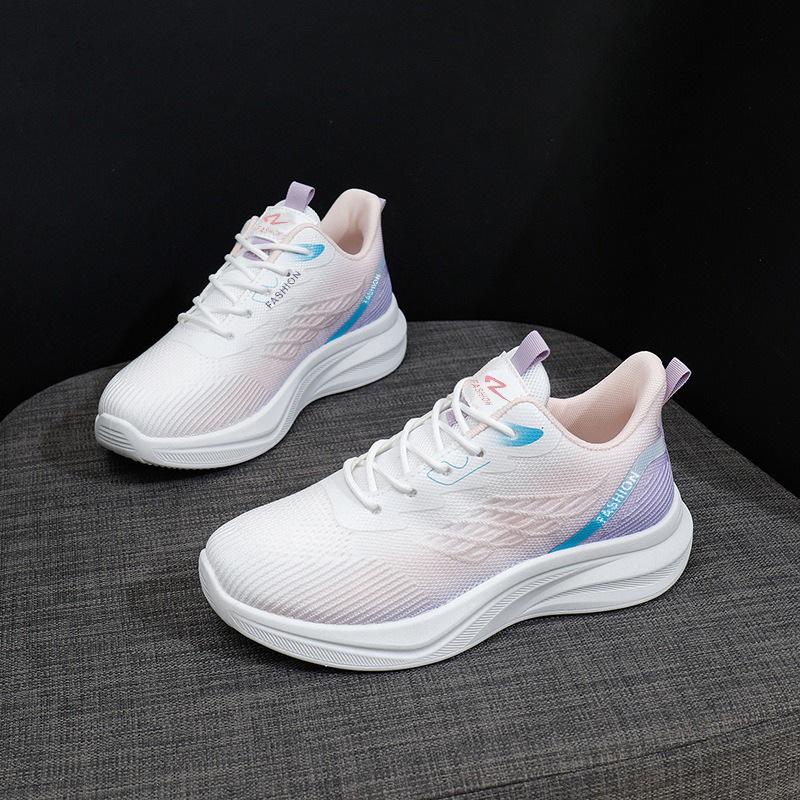 Летняя новая обувь для повседневной носки для женщин, занимающихся внешней торговлей, из летучего трикотажа, на мягкой подошве, универсальная, дышащая сетчатая спортивная обувь, корейская версия рабочей обуви