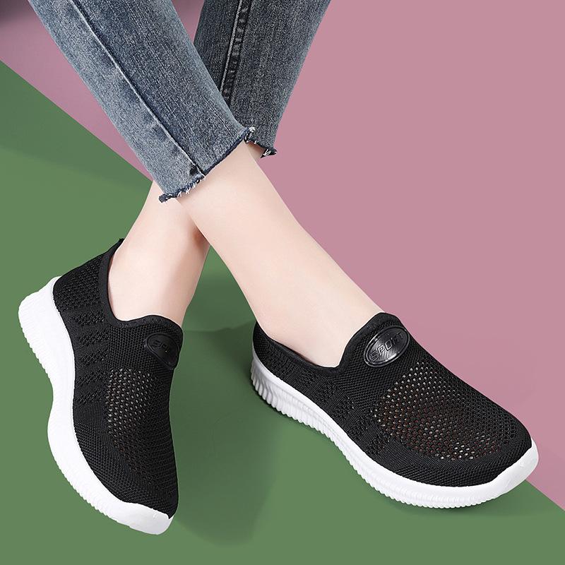 2025 лето новая сетчатая полая дышащая повседневная женская обувь мягкая подошва одна педаль женская обувь старые пекинские туфли для мамы