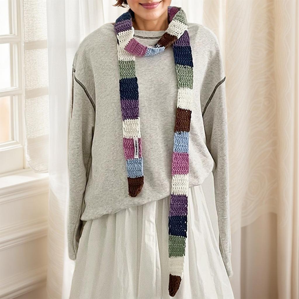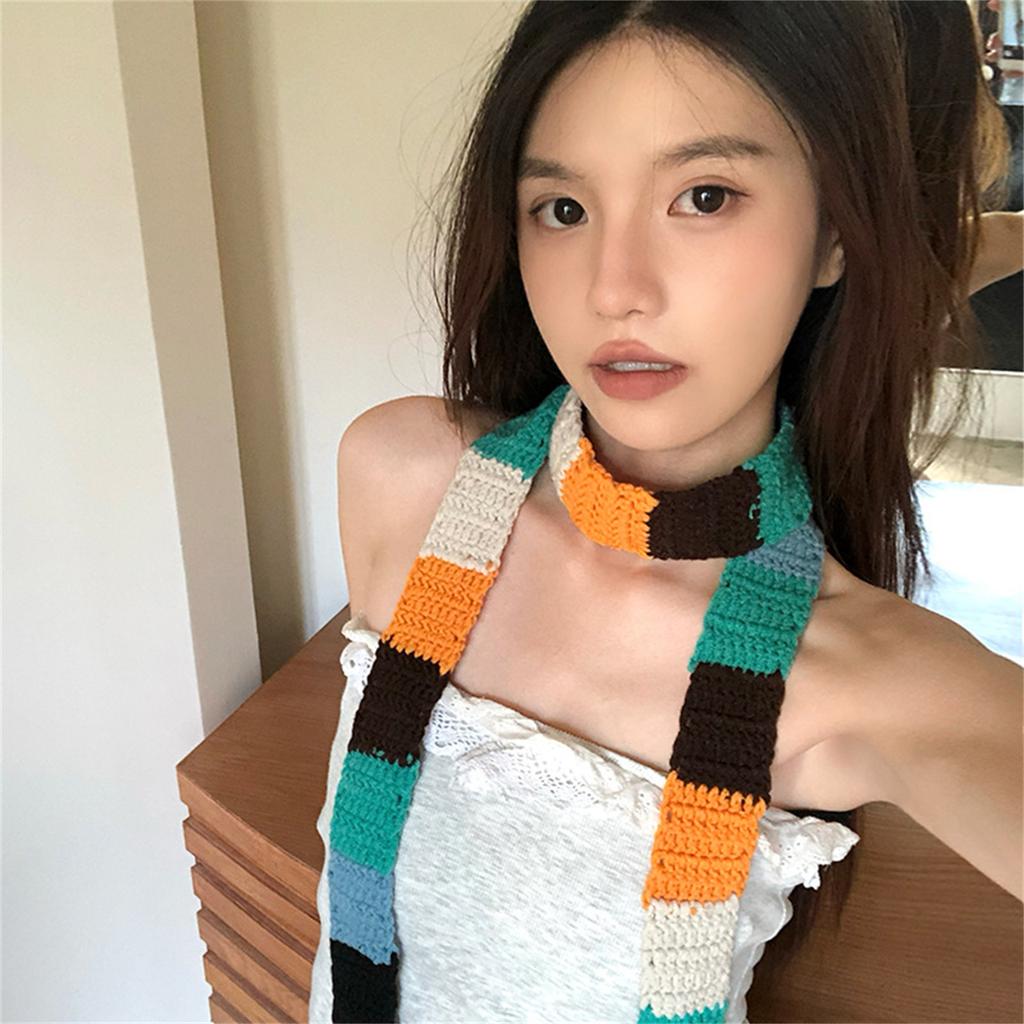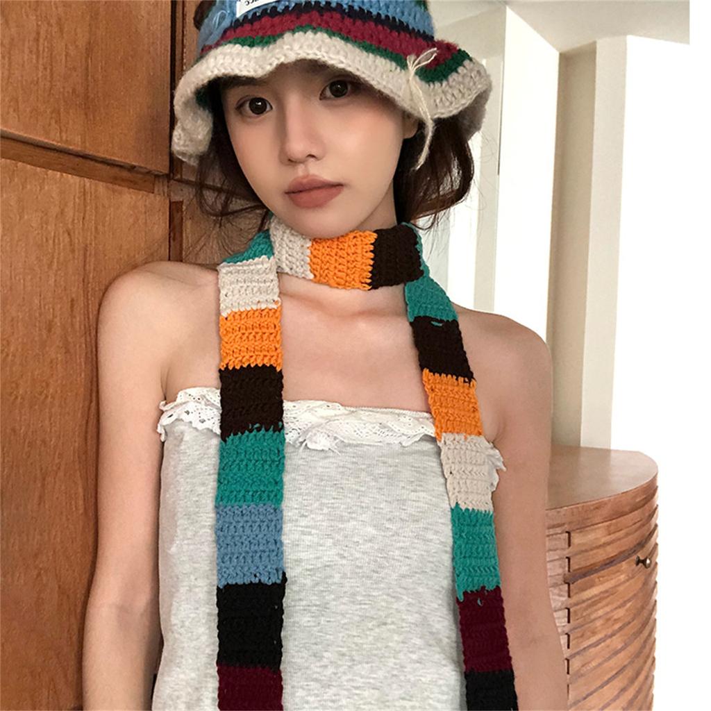 Женский красочный полосатый шарф вязаный шерстяной теплый контрастный длинный узкий шарф сосиска тонкий шарф зимний шейный платок