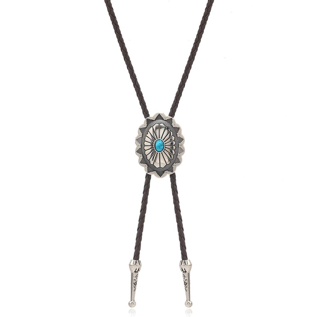 Регулируемый галстук-боло Популярный западный ковбойский для подростков мужчин женщин танцевальный галстук панк рубашка сплав бирюзовый пряжка кулон
