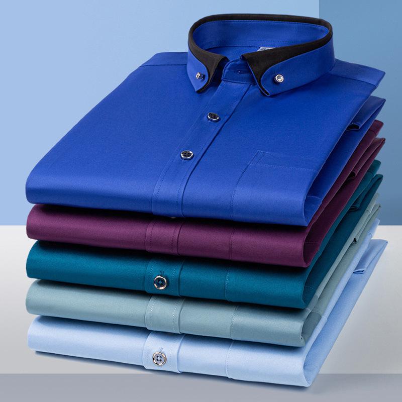 Эта мужская рубашка в стиле business casual идеально подходит для весны и осени, предлагая сочетание стиля и комфорта.. Изготовлен из эластичной полиэстеровой ткани, обеспечивает свободу движений, сохраняя при этом изысканный вид.. Рубашка имеет однотонный узор и уникальный квадратный вырез горловины с контрастным воротником, добавляя современный штрих в ваш гардероб.. Благодаря длинным рукавам и не требующему глажки дизайну, он удобен и идеален для занятого образа жизни, позволяя вам выглядеть безупречно весь день.