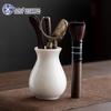 Suet jade porcelain tea ceremony six gentlemen set, ebony kung fu tea set, tea clip, tea making tool accessories