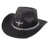 Модная замшевая ковбойская шляпа для женщин, мужчин, унисекс, шляпа с широкими полями, с металлической головой быка, дышащая, солнцезащитная шляпа, дорожная федора