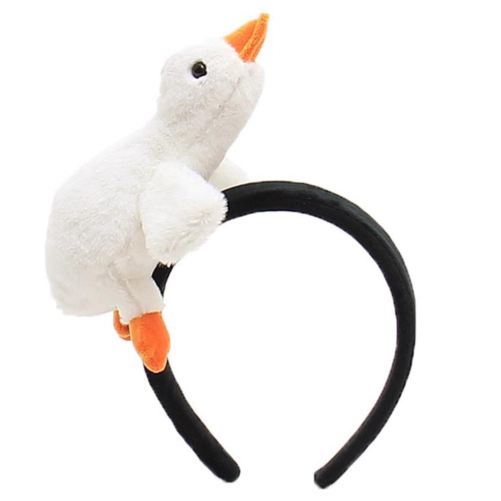 Милый 3D Ободок на голову с белым гусем, макияжный обруч для волос, мягкая плюшевая кукла-утка, животный ободок для волос, аксессуары для волос для женщин, детей