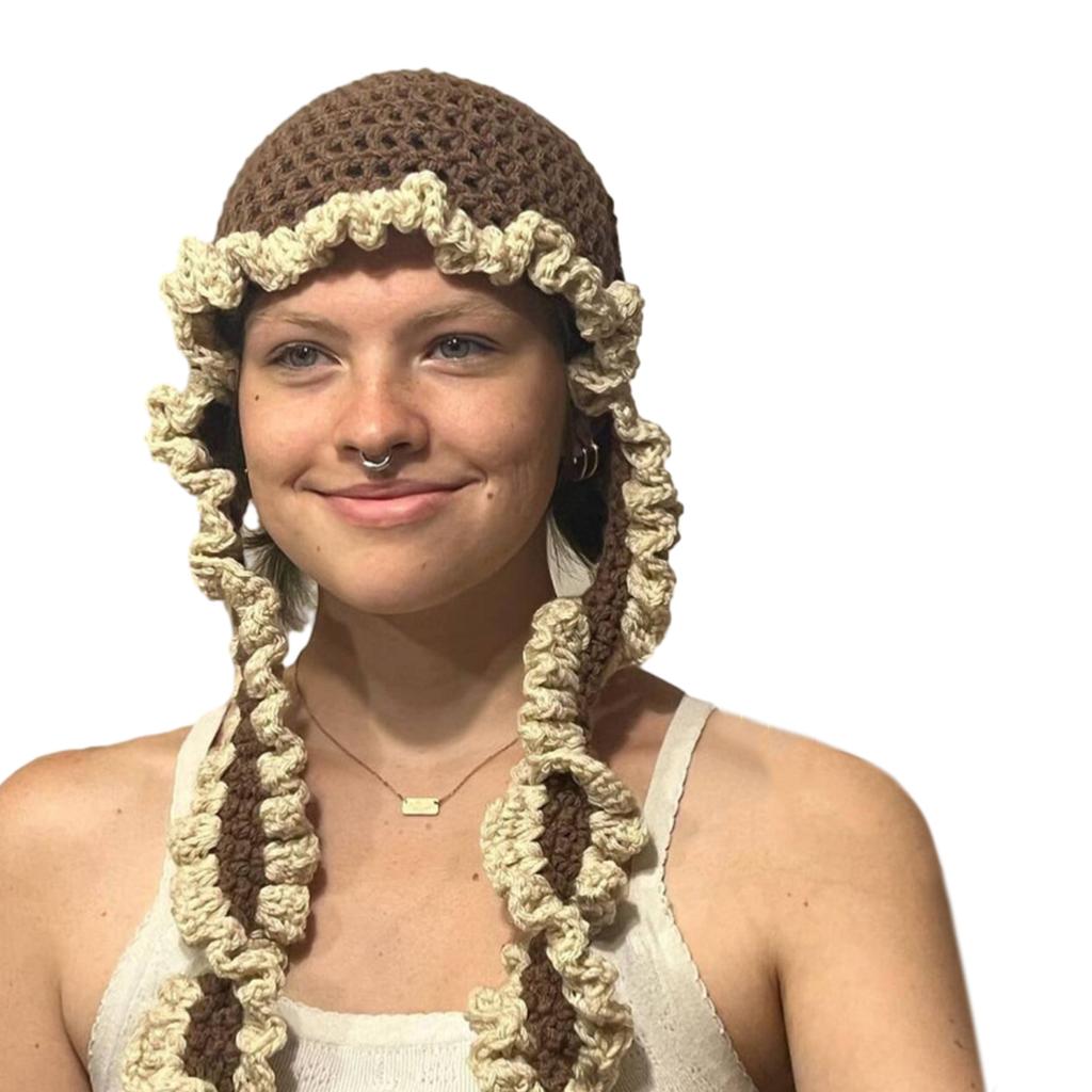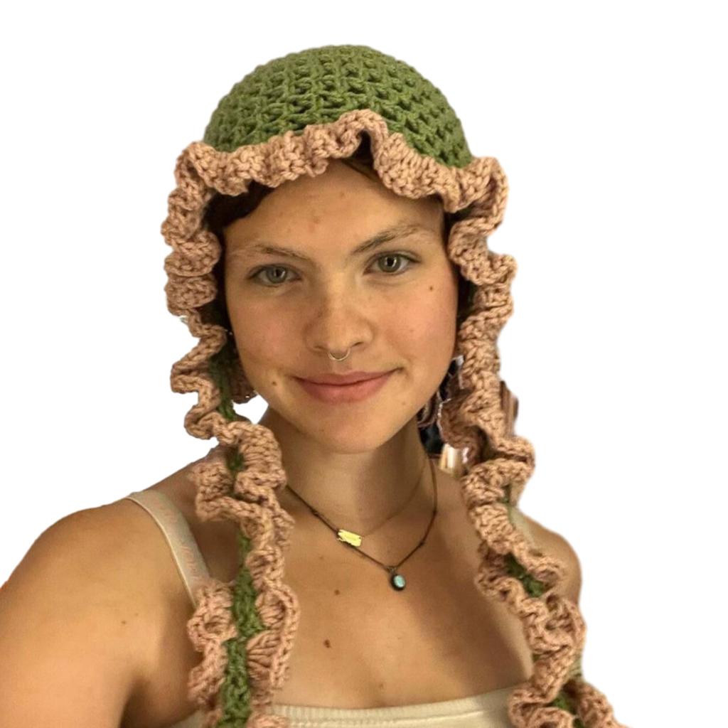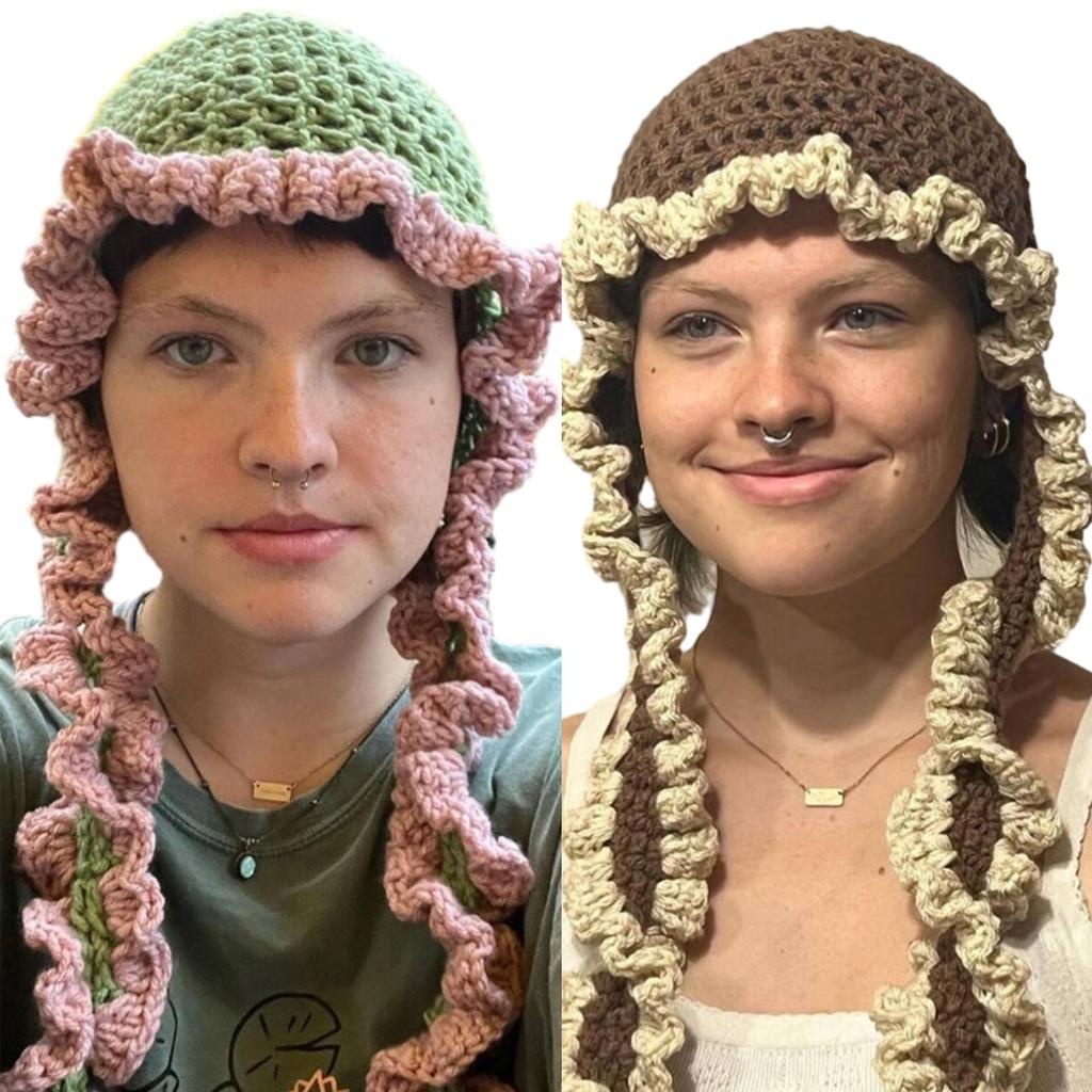 Вязаная ажурная шапка для женщин, ручная работа, шапка-бини, головной убор для защиты от солнца для девочки, модная шапка с оборкой, модный головной убор для подростков