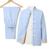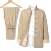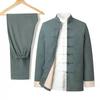 Этот элегантный мужской костюмный набор предлагает вневременное сочетание классического и культурного стиля, идеально подходящее для мужчин среднего и пожилого возраста.. Разработанный для весеннего и осеннего сезонов, он представляет собой ретро-френч Чжуншань в сочетании с ханьфу в китайском стиле.. Изготовленный из высококачественного хлопка и льна, комплект обеспечивает комфорт и воздухопроницаемость, идеально подходит для переходной погоды.. Его изысканный дизайн делает его подходящим выбором как для повседневных, так и для официальных мероприятий, а прочные материалы обеспечивают долговечность и сохранение стиля.