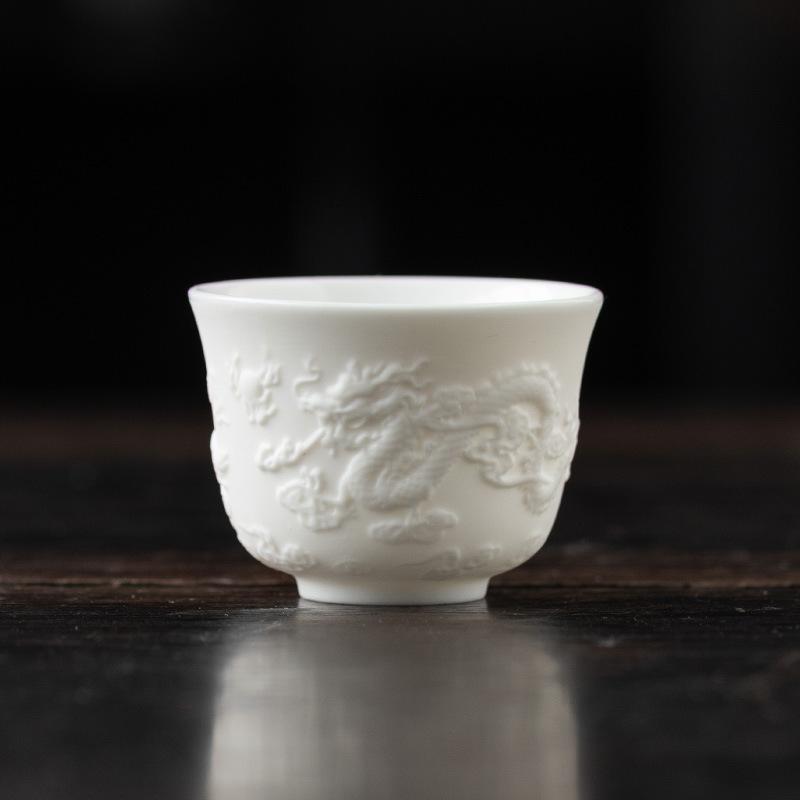 Саловый нефрит белый фарфор рельефная чайная чашка мастер-чашка чашка с драконом и фениксом персональная одиночная чашка вегетарианский обжиг кунг-фу керамика ручной работы чай