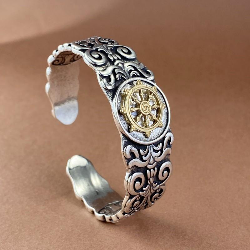 Новый ретро браслет с цветком танской травы, колесом и рулем, с открытым ртом, мужской, большой, модный — купить товар онлайн с бесплатной доставкой по всему миру!