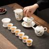 Golden silk bamboo rhyme suet jade porcelain travel tea set portable outdoor kung fu tea set porcelain gifts