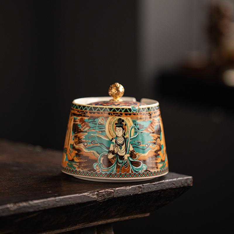 New antique light luxury ceramic ashtray with cover anti-fly ash and anti-smoke smell advanced personalized gift home office