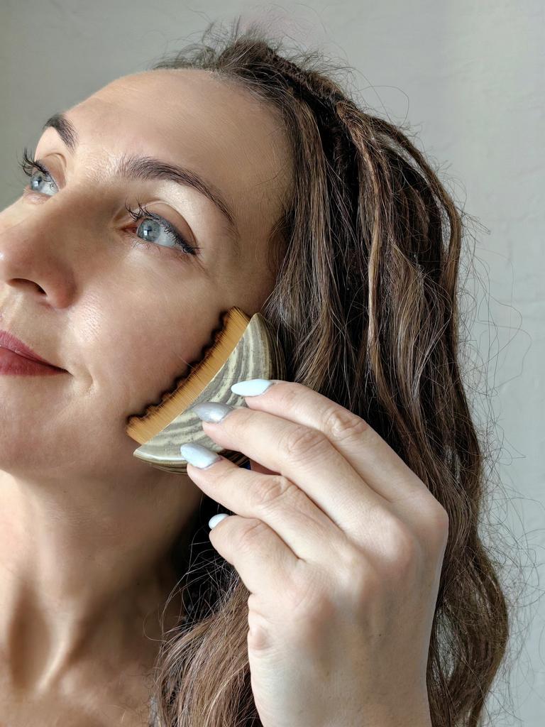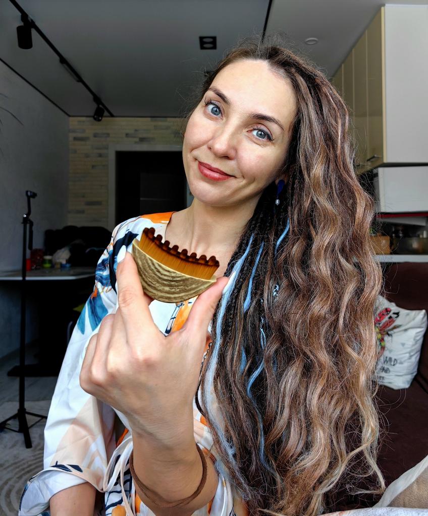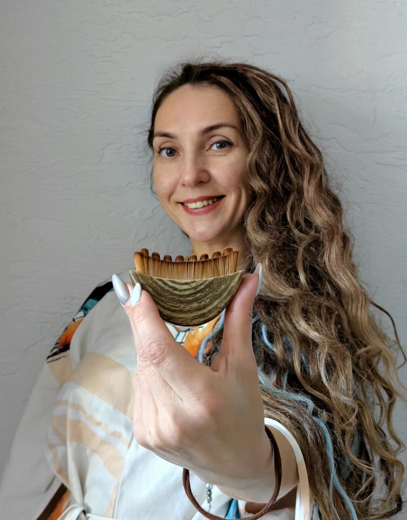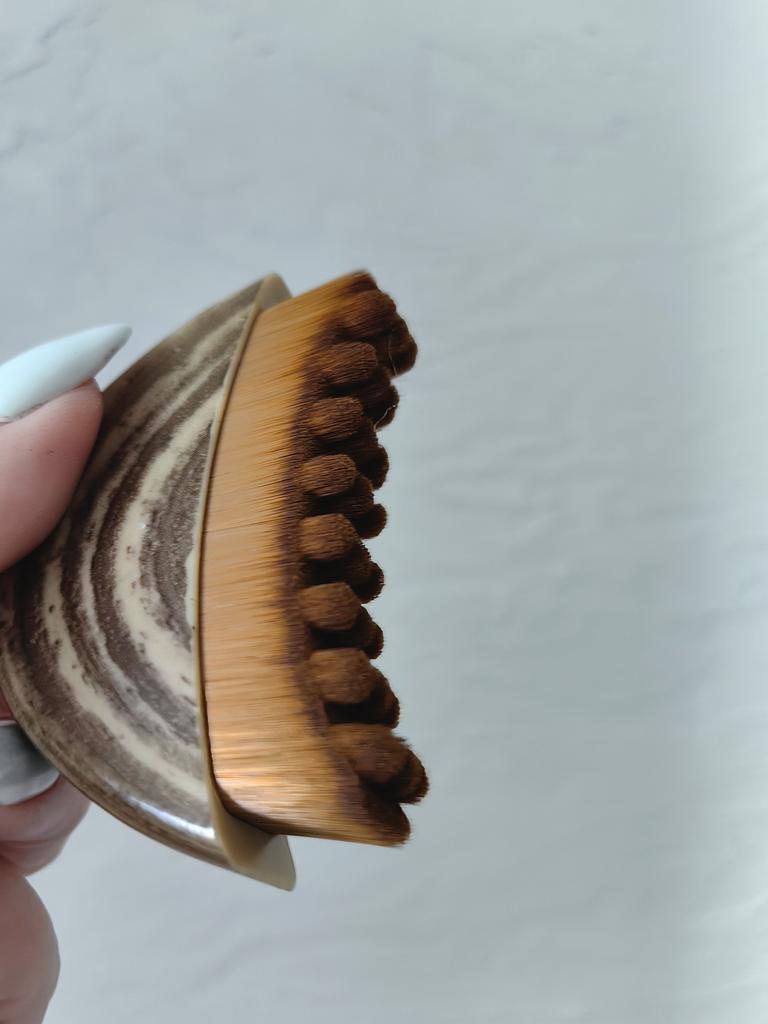 Лимфатическая щётка для лица 🤎 Всем солнечный приветик 👋😉 Есть много разных способов массажа лица Эта щётка работает по принципу гуаша, точнее кто знаком со способом массажа этим предметом, то тому будет легко пользоваться и этой щёточкой 🫶 Но тут отличие в том, что нет сильного нажима на кожу, а прикосновения щетинок скорее мягкие, нежные и приятные 👐 Задача щётки: лимфатический дренаж, уменьшить отёки и контуринг лица ✔️ Компактная, удобно брать с собой хоть на работу, хоть в поездки. Я взяла сразу с коробочкой ✔️ Щетинки из искусственного материала, но выглядят отлично и как я уже писала выше, они мягкие, нежные и не травмируют кожу ✔️ Эргономичная форма - легко прорабатывать зоны вокруг скул и подбородка ✔️ Корпус напоминают ороговевшую кость, но это плотный пластик. Важно: движения должны быть плавными по массажным линиям. Если давить сильно, эффекта не будет. После каждого применения щётку нужно помыть в мыльной воде и просушить. Пользоваться на очищенную коже После такого массажа, все Ваши кремушки, сыворотки, эмульсии будут впитываться лучше 🫶 Использовать можно хоть каждый день, но 3-4 раза в неделю тоже неплохо Массаж длиться 5-7 минут Важно водить по массажным линиям ☺️ Цена приятная 😉 Я покупкой довольна очень и рекомендую этот товар ❤️ Спасибо, продавцу и Джуму 😘 Чмок всех кто со мной на Джуме 😘 Желаю удачных покупок и весны в душе ❤️ До скорого 🙌😊