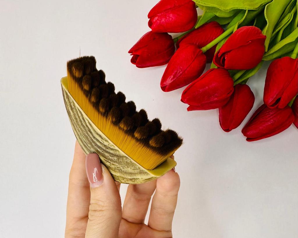Массажная щётка для лимфатического контуринга лица Суперизобретение для массажа лица и шеи. Массажная щётка невероятно приятная на ощупь. Мягкие щетинки и эргономичная форма позволяют максимально эффективно проводить массаж. Мне данная щётка понравилась намного больше, чем камень гуаша. Щётка предназначена для улучшения тонуса кожи, уменьшения мышечного напряжения. Уменьшает отёчность лица, делает контуры более чёткими, улучшает цвет лица, убирает шелушения. Применять можно на сужую или влажную кожу. Мне нравится использовать с массажным маслом для лица. Движения делаем по массажным линиям снизу вверх. Массажная щётка мне очень понравилась. К покупке рекомендую обеими руками!